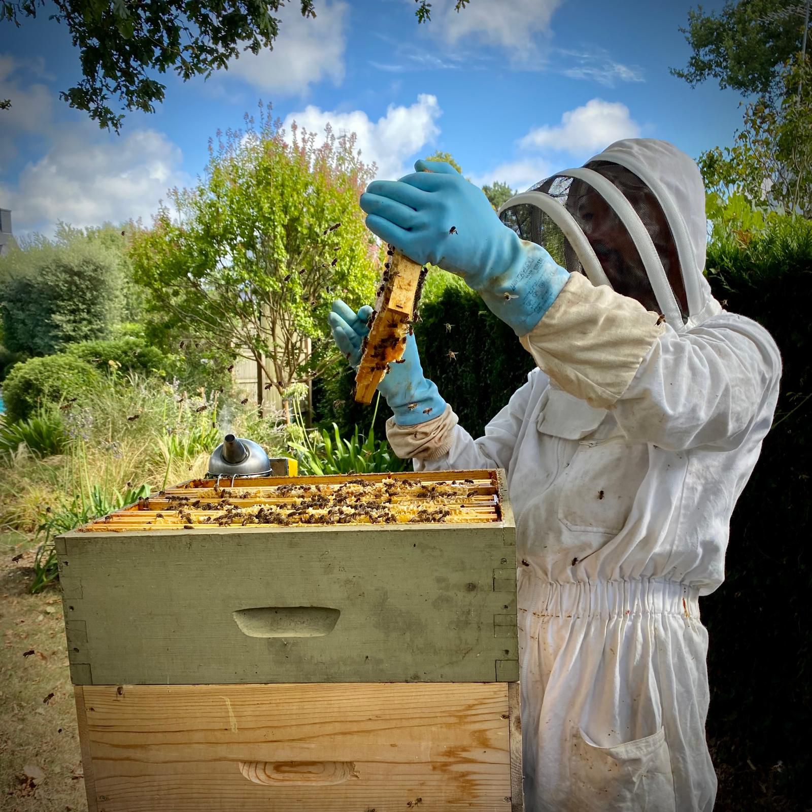 Nous apprécions le partage de ce savoir autour de la ruche, l’exaltation au moment de la récolte du miel ainsi que les discussions joviales autour d’un thé avec un petit gâteau ..parfois!
